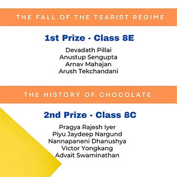 | Devadath Pillai | 8E | First | The Fall of the tsarist regime | Ms Yamini Singh |